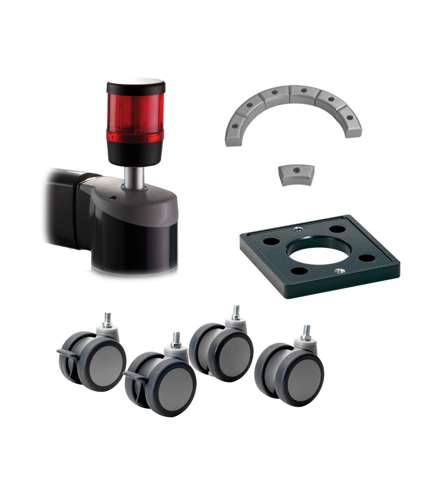 博恩斯坦為懸臂系統的各個組件提供廣泛的配件程序--為前旋轉角度限制器或工業腳輪/基地雙腳。