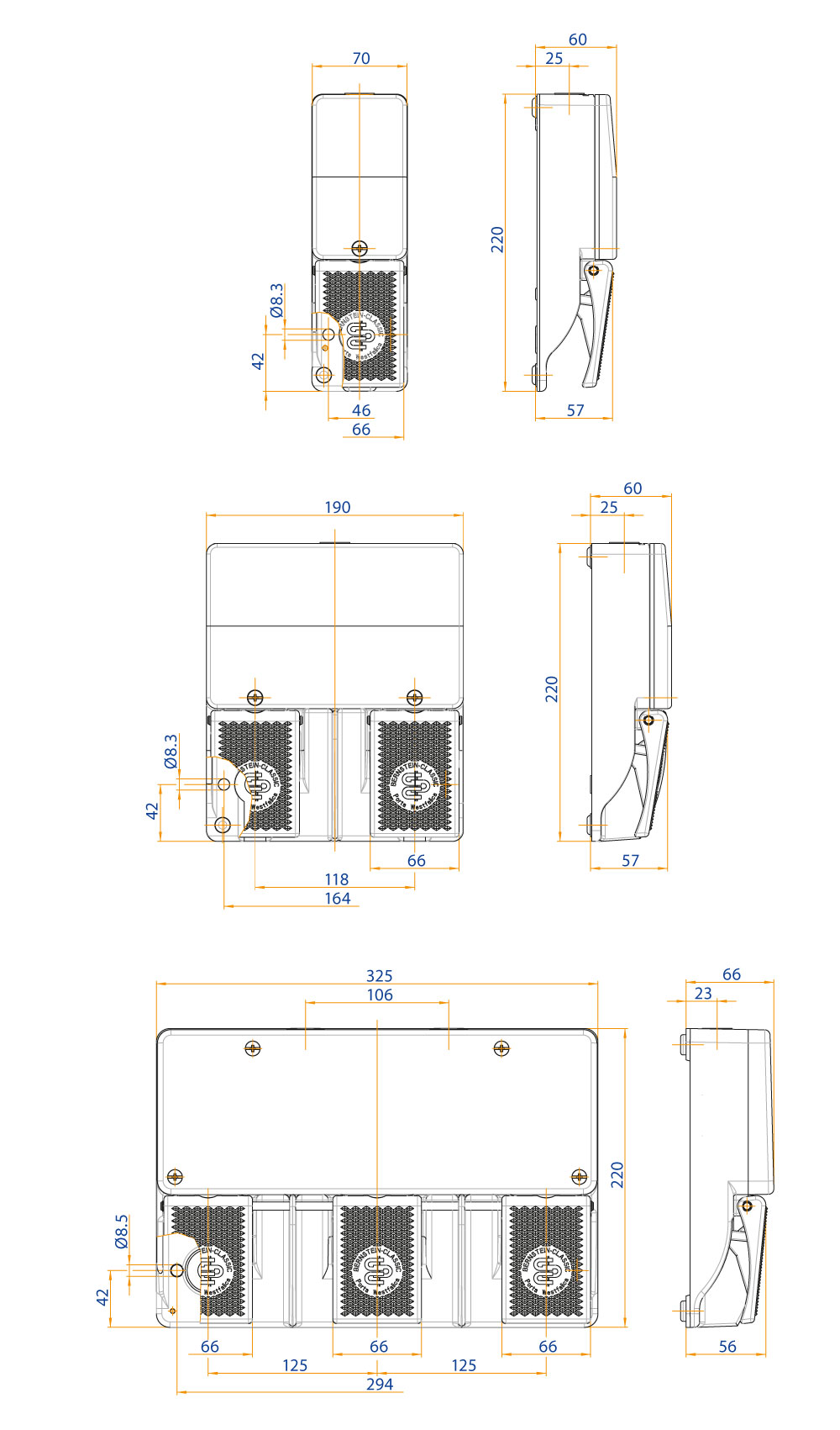 一(F1)、二(F2)和三(F3)踏板具有相同長度和高度、不同寬度尺寸的三個基本外殼。