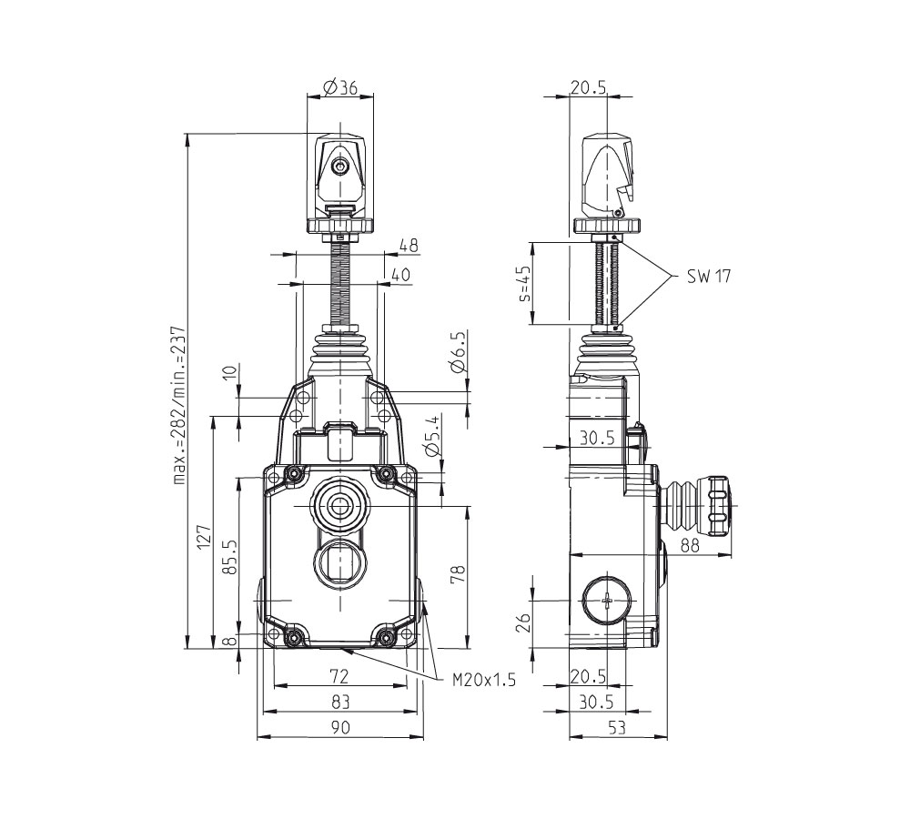 易于讀取開關狀態,遠距離看都很清晰,電纜接口3 x M20 x 1,5